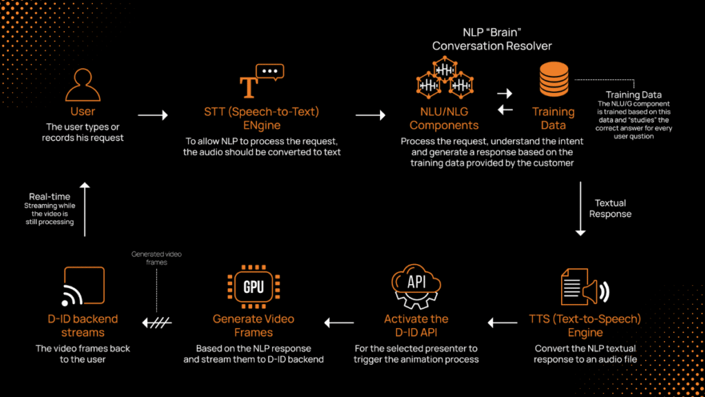 - Example Platforms: D-ID API, Soul Machines, Heygen, Inworld AI
