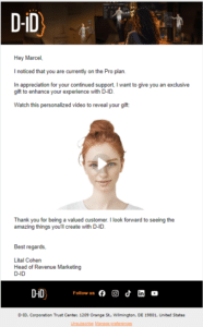 In response, D-ID developed a sophisticated platform integrating personalized video content into email marketing campaigns. Key features include: